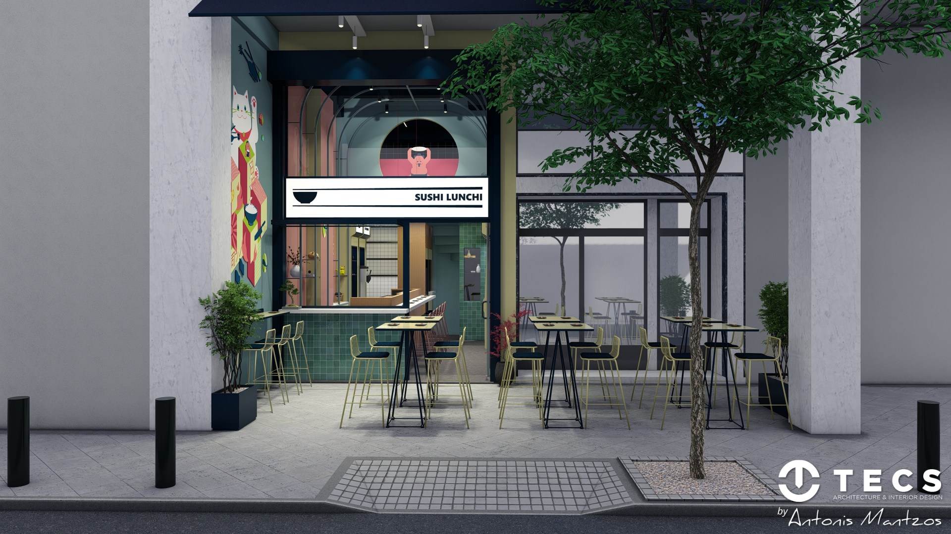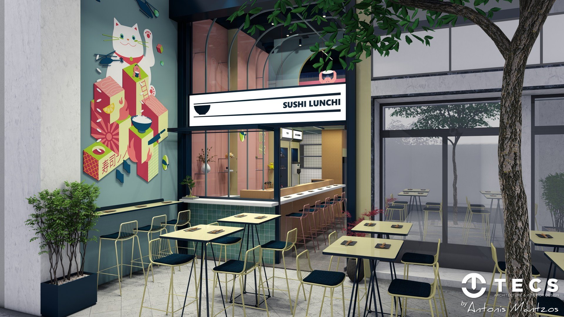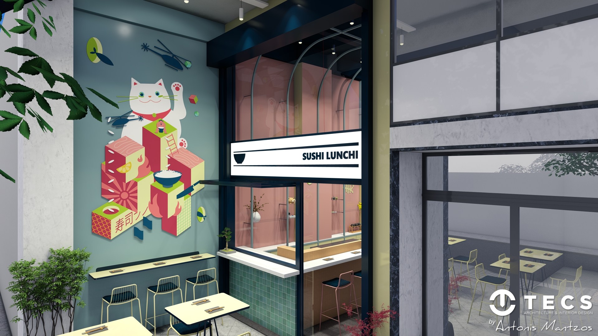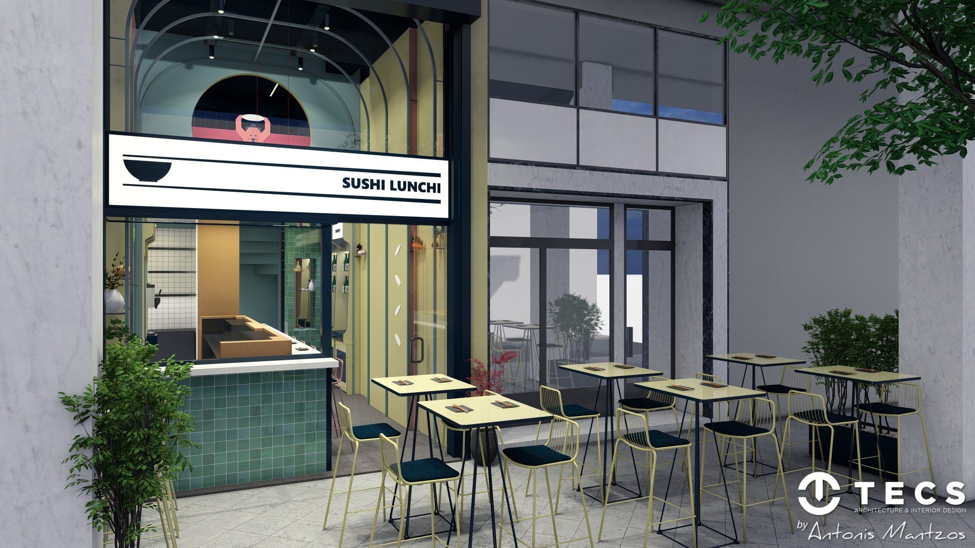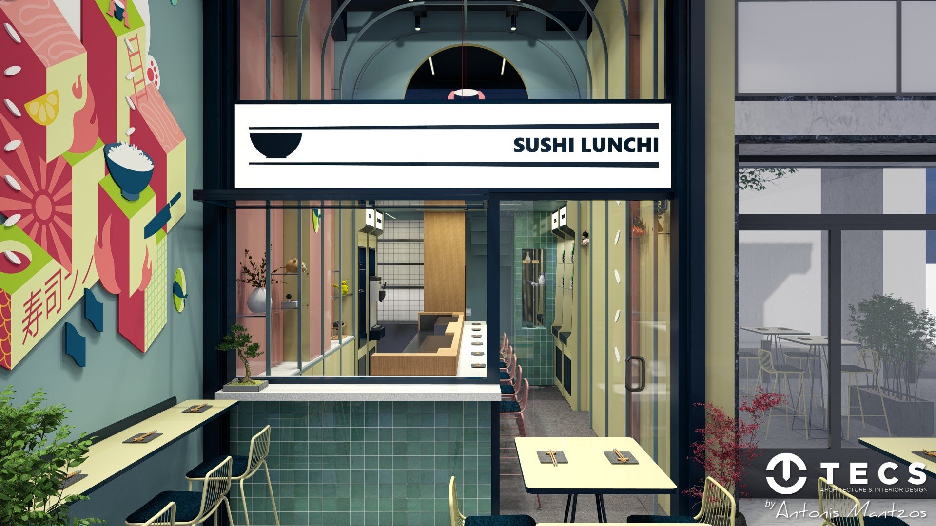 TECS delivered the spatial planning and interior concept for Sushi Lunch, a compact sushi bar created for renowned chef Antonis Drakoularakos.
